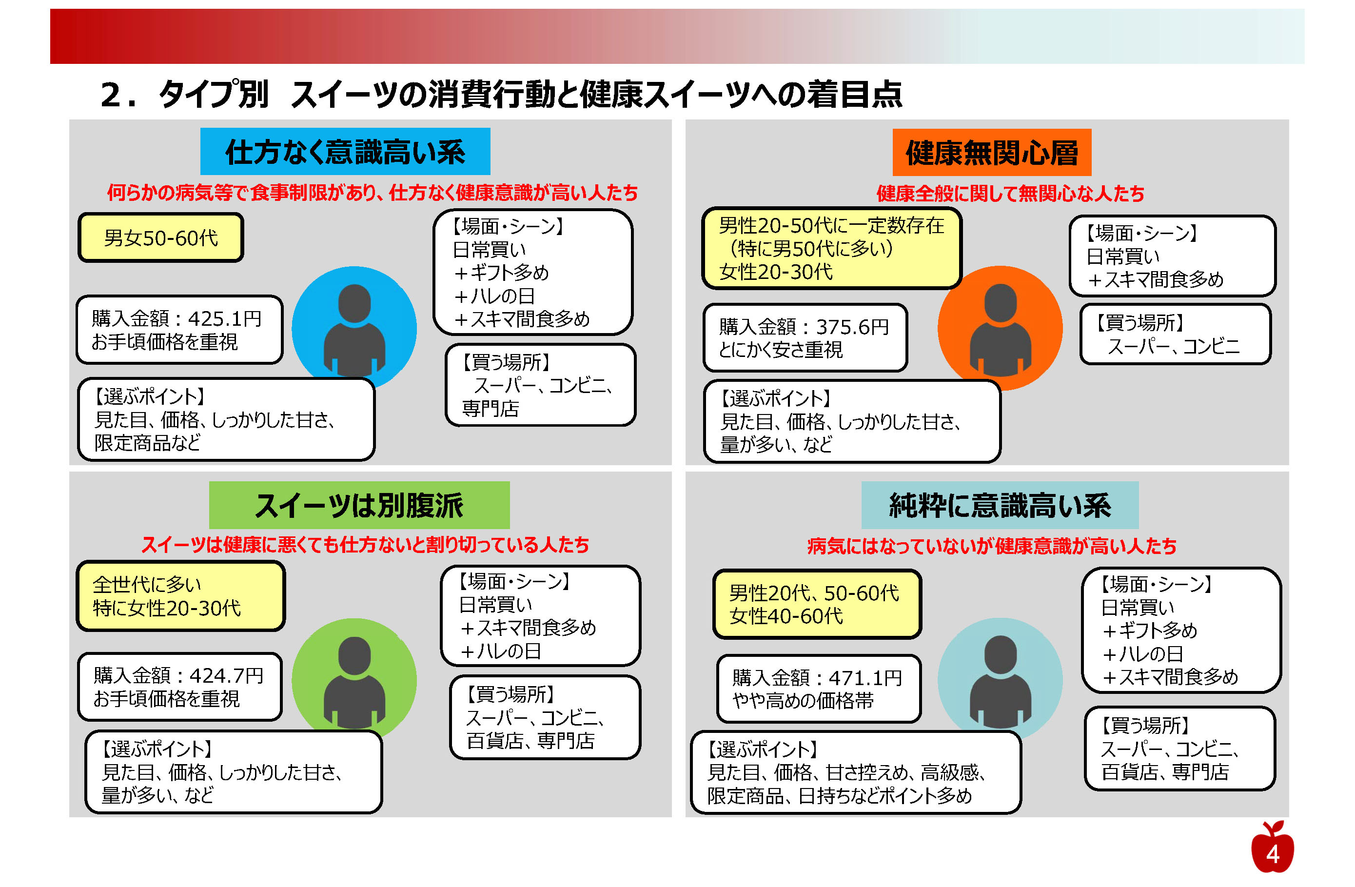 マーケティング調査結果から、健康志向スイーツのターゲット、事業可能性を探りました