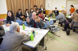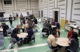 そこで、地区住民だけで話し合うのではなく、複数の地区が合同でワークショップをおこない、互いに魅力を伝え合い、質問し合うことで、魅力の再発見、アイデアの共有、連携の可能性を見出しました。さらに各テーブルには、市内の学生に入ってもらい、率直な感想や斬新なアイデアが出されたことで、住民にとっても新しい刺激が与えられ、やる気につながりました。地区別ワークショップの参加者を募って開催した全体会では、数人ずつシャッフルさせながらテーブルを回る“ワールドカフェ方式”でおこない、回を重ねて顔を合わせることにより、地区を越え、市全体としての歴史文化を大切にする思いを共有することができました。