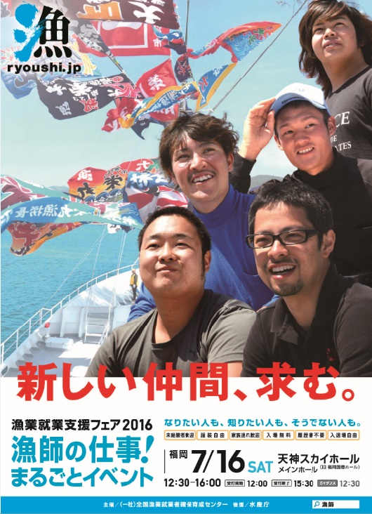 プロジェクト紹介漁業への新規就業を促進することを目的に、就業希望者に向けた情報発信、受入漁業者とのマッチングイベント(漁業就業支援フェア)などを行い、漁業研修生の確保につなげた。平成28年度は、漁業就業支援フェアを福岡で開催し、新たに担い手を募集している全国57団体が出展し、100名を超える就業希望者を集客した。