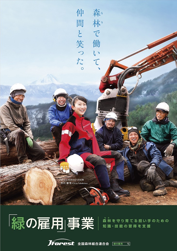 「緑の雇用」事業の普及と利用促進を図るために、普及啓発ポスターの作成および関係機関等への配布を行った。「ミス日本みどりの女神」をモデルとして起用し、山梨県内の林業事業体にご協力いただき作業現場で撮影した。