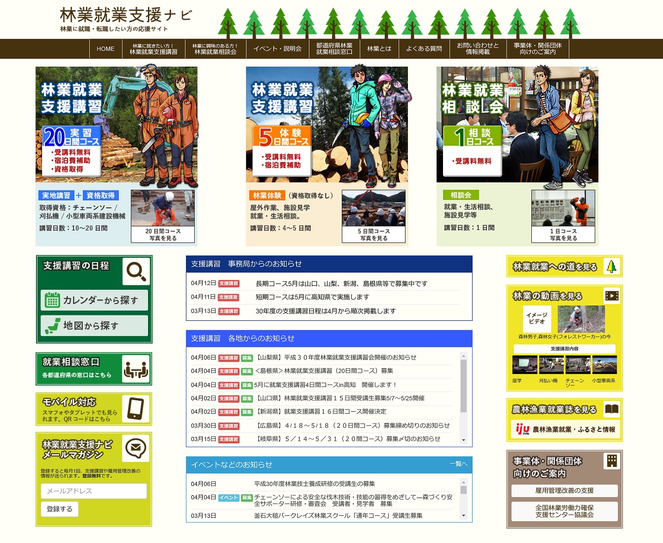 国森林組合連合会が運営する林業就業支援ナビのWEBサイトの運営・管理を行った。当サイトでは、林業の就職に役立つ資格が取得できる「林業就業支援講習」や林業に興味を持ち始めた初心者向けの林業見学ツアー「林業就職ガイダンス」の他、各都道府県の林業就業相談窓口や林業就業へのステップを整理して掲載している。