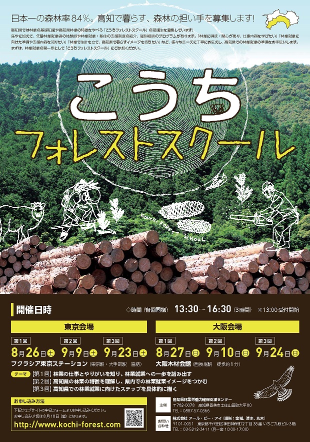 プロジェクト紹介高知県内での林業就業者を増やすことを目的に、東京・大阪の都市部ではUIターン林業就業希望者等を、県内では高校新卒予定者等を対象に、高知の林業に関する連続講座を開催した。講座は、林業の基礎知識を学べるほか、林業就業支援と移住支援の紹介、先輩林業従事者との交流、チェーンソー体験等の機会を設けた。多くの受講者が高知県立林業大学校に入学するなど、林業就業の支援につながる成果が得られた。