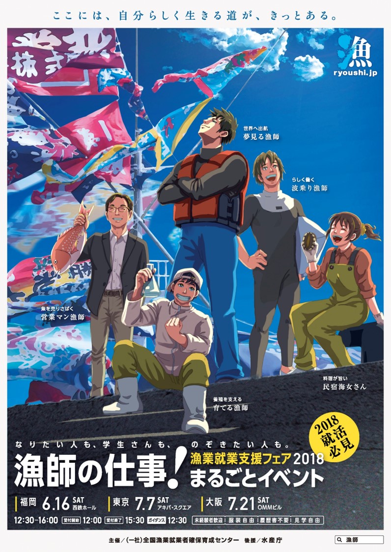 プロジェクト紹介漁業への新規就業を促進することを目的に、就業希望者に向けた情報発信、受入漁業者とのマッチングイベント(漁業就業支援フェア)などを行い、新規漁業就業者の確保につなげた。平成30年度は、漁業就業支援フェアを東京・大阪・福岡の3都市で開催し、約700名の就業希望者を集客した。