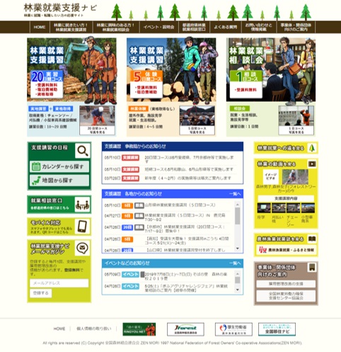 国森林組合連合会が運営する林業就業支援ナビのWEBサイトの運営・管理を行った。当サイトでは、林業の就職に役立つ資格が取得できる「林業就業支援講習」や林業に興味を持ち始めた初心者向けの林業見学ツアー「林業就職ガイダンス」の他、各都道府県の林業就業相談窓口や林業就業へのステップを整理して掲載している。