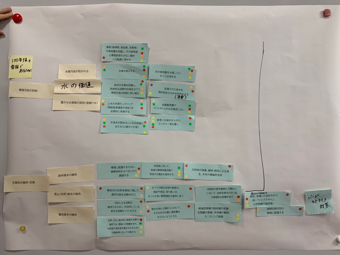 雪国観光圏のビジョン「100年後も雪国であるために」の実現に向けて、宿泊施設を起点に環境・経済・コミュニティを持続可能とする仕組み、取組を検討した。海外の環境配慮型ホテルのビジネスモデル、サステナブルツーリズムに関する国際基準等の研究を行うとともに、国際基準を見すえて独自のサステナブル基準やルールのあり方、今後の行動指針等を整理・共有した。検討にあたり、雪国観光圏エコロッジを対象に達成度調査を行うとともに、ロジックモデル手法を用いて宿泊施設の具体的な行動と短中期的な社会的影響の関係性を可視化し、宿泊施設・事業者の主体的な行動選択を図った。